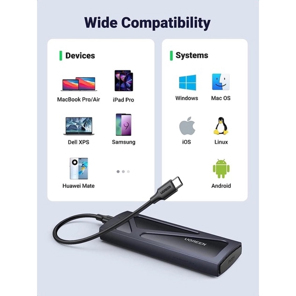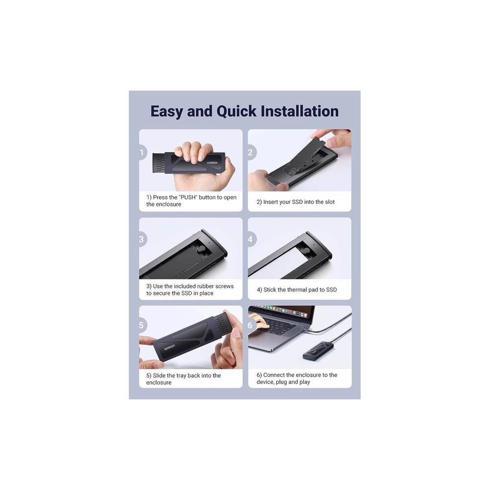 მყარი დისკის ქეისი UGREEN CM578(15512), M.2 NVMe SSD Enclosure Adapter, Grey