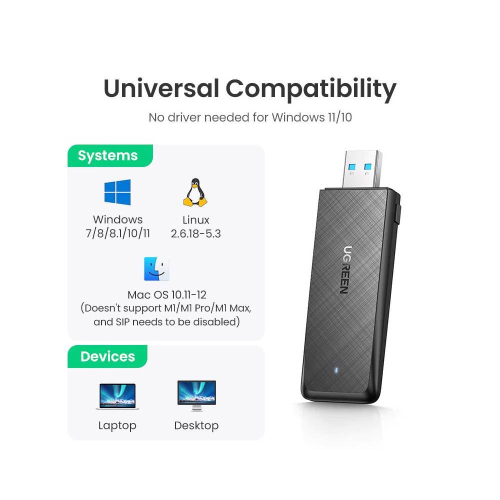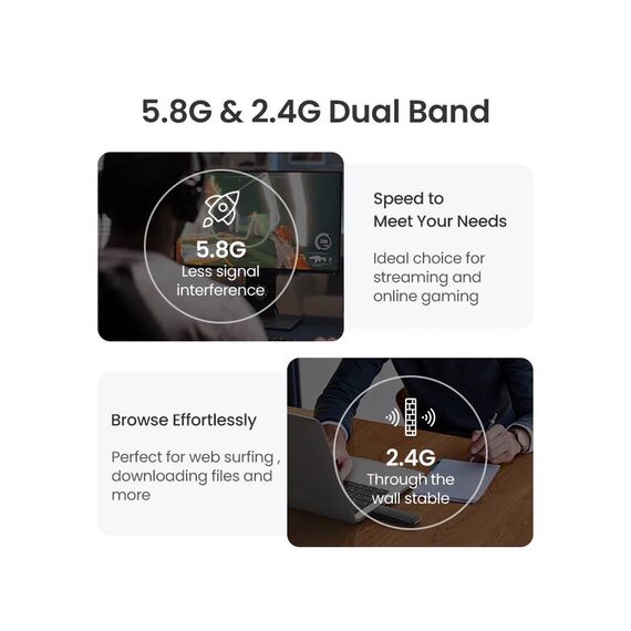 Wi-Fi ადაპტერი UGREEN CM492 (50340) AC1300 Wireless Network Adapter, USB 3.0, 1300Mbps, Black