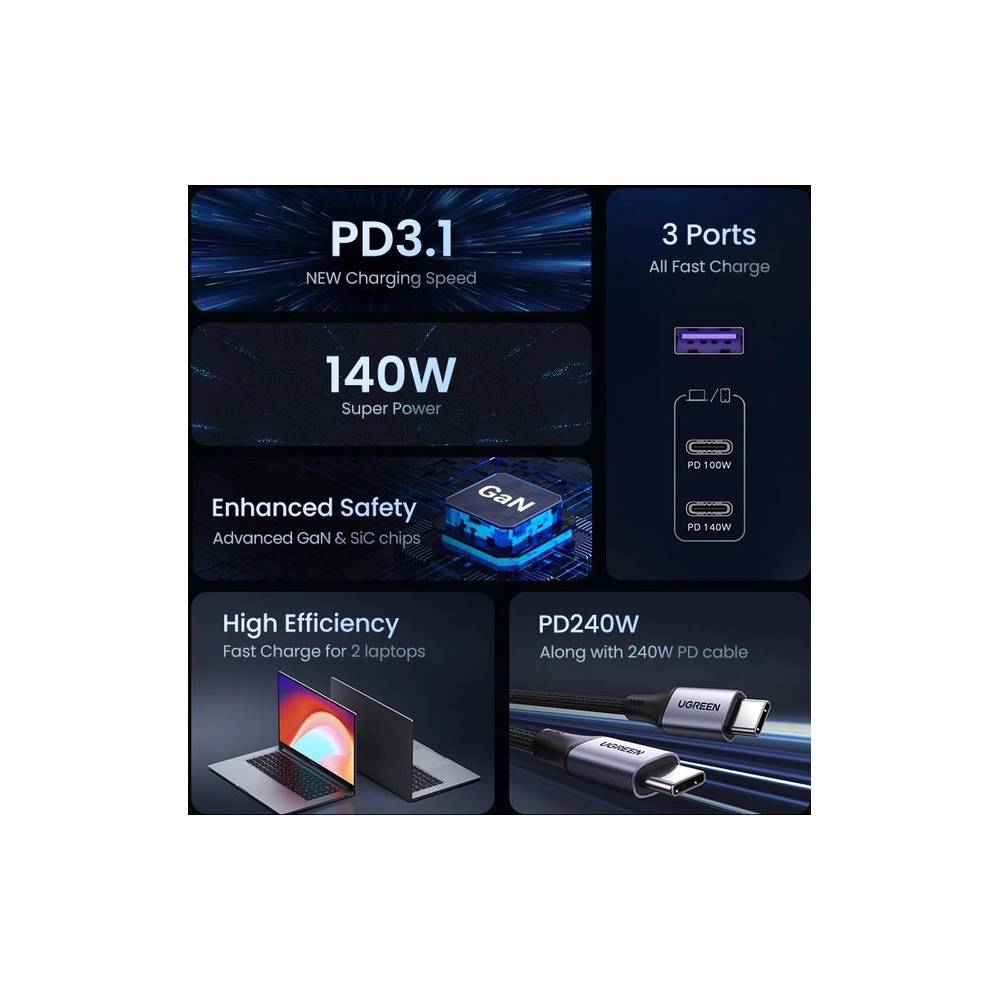 დამტენი UGREEN CD289 (90549) Nexode, 140W, USB, Type-C Gray