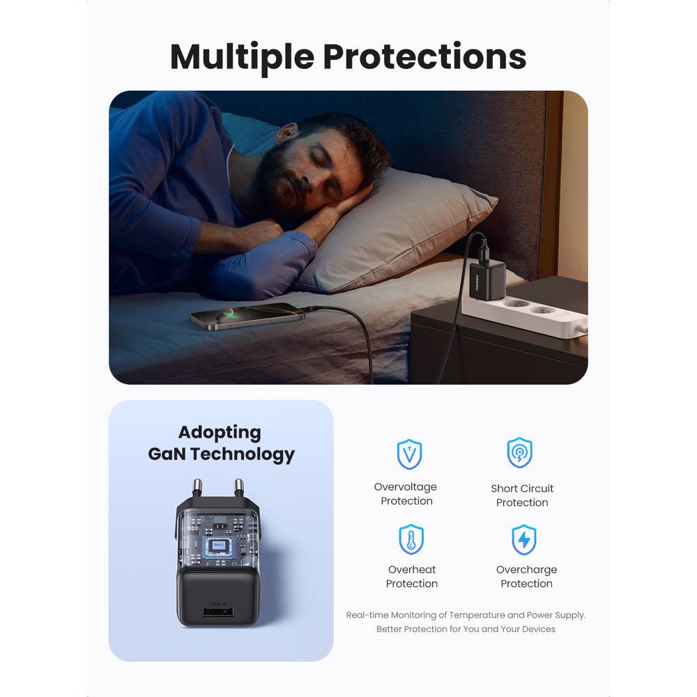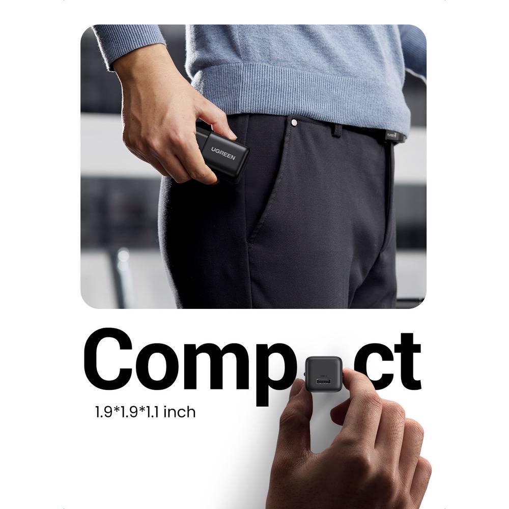 მობილურის დამტენი UGREEN X518 (75613), 18W, USB, GaN Fast Charger, Black