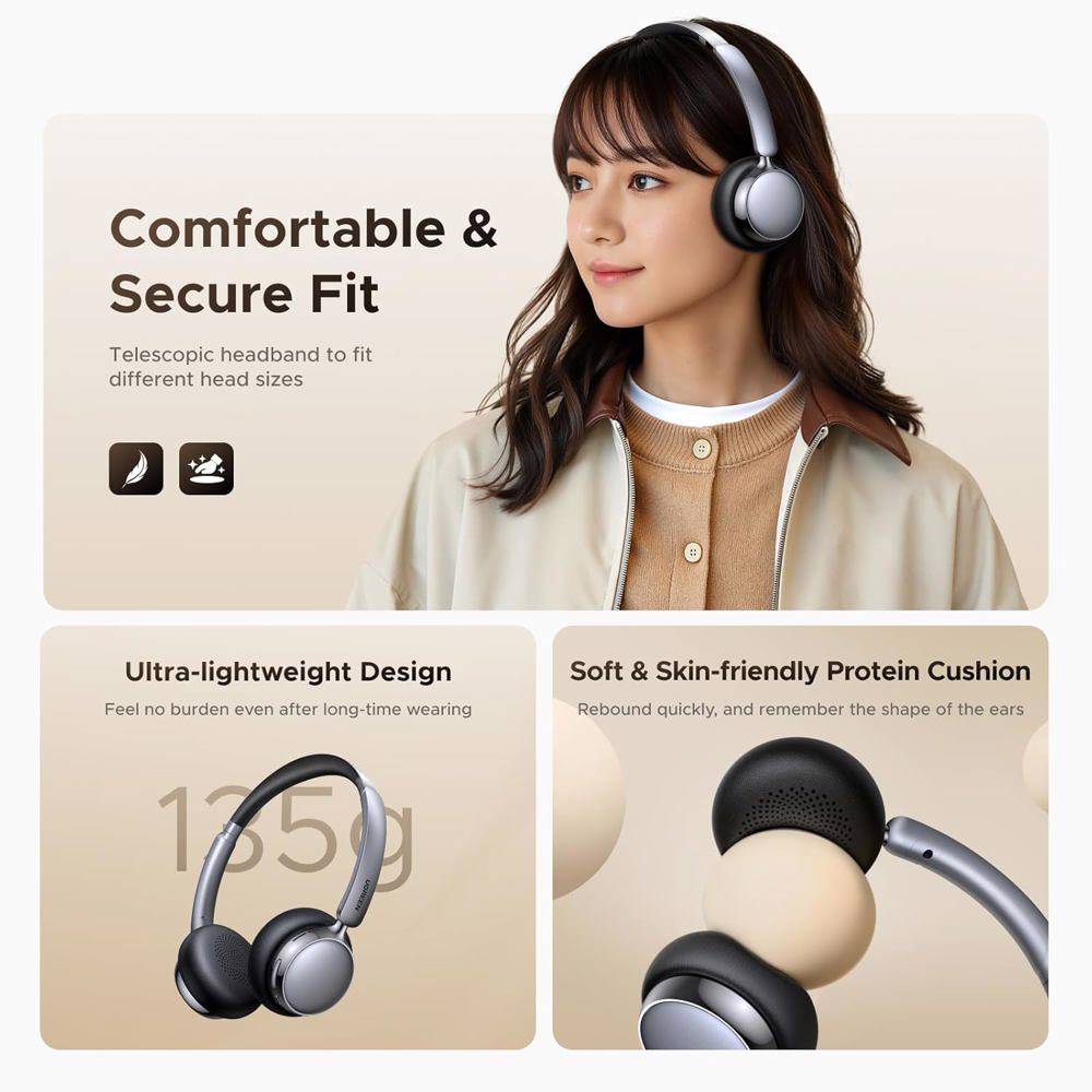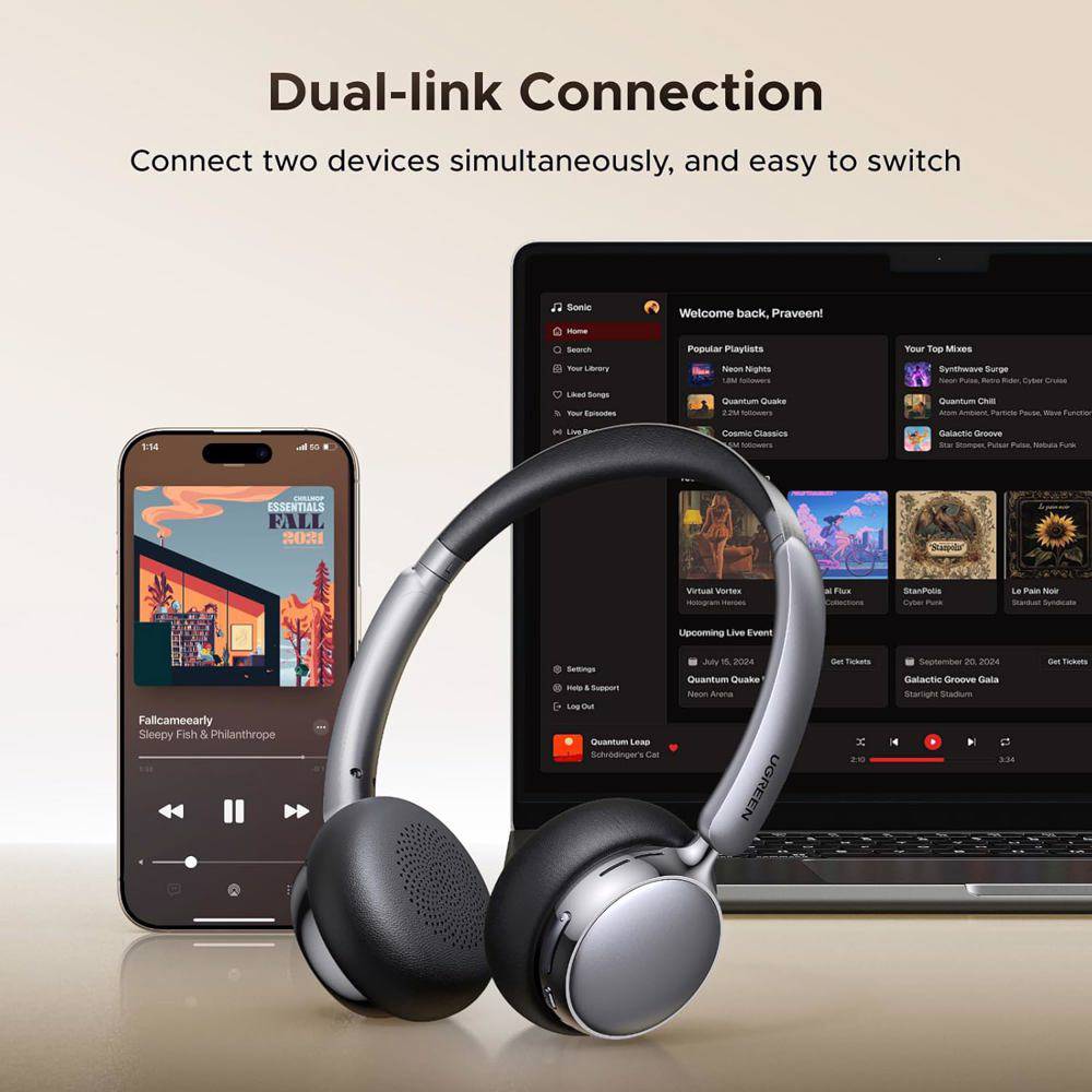 ყურსასმენი Ugreen HP207 (75630) Studio Plus, Headset, Wireless, Bluetooth, Black/Silver