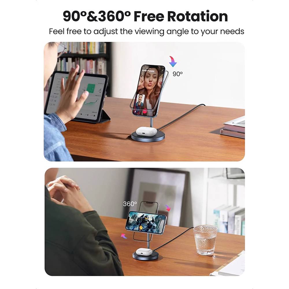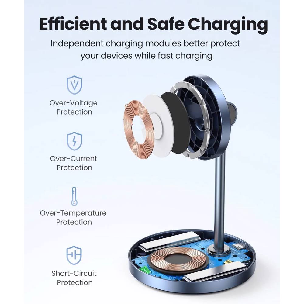 უსადენო დამტენი UGREEN CD317 (90668), 2-in-1 MagSafe Magnetic Wireless Charger, Black/Blue