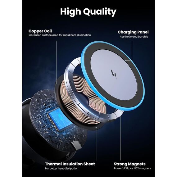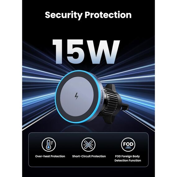 უსადენო დამტენი UGREEN W525 (35029), 15W, Magnetic Car Wireless Charger, Grey