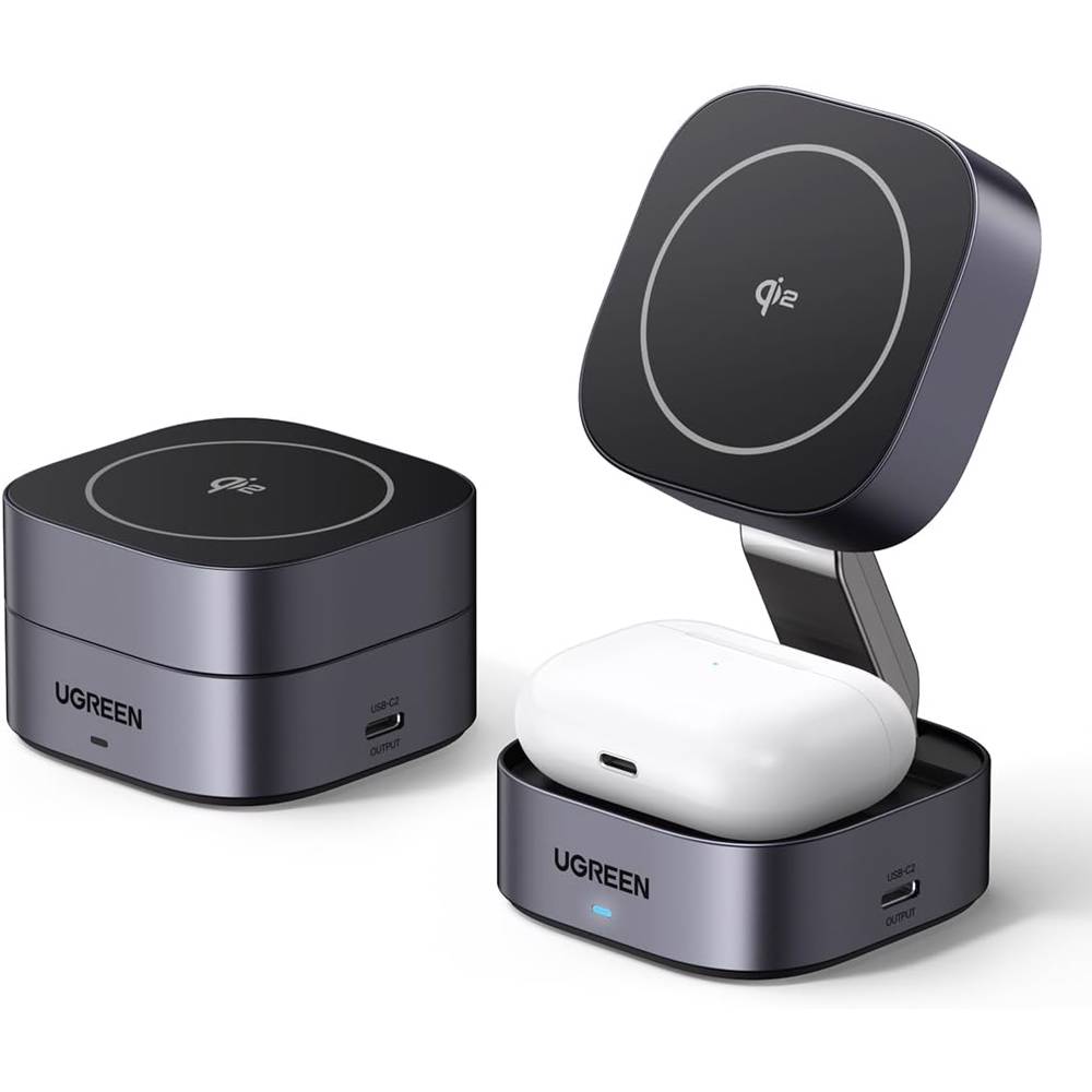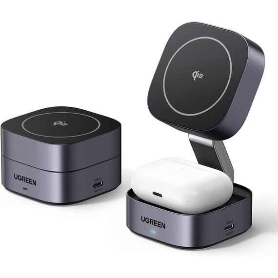 უსადენო დამტენი UGREEN W702 (35316) MagFlow Qi2, 25W, Magnetic Foldable Charging Station, Dark Gray