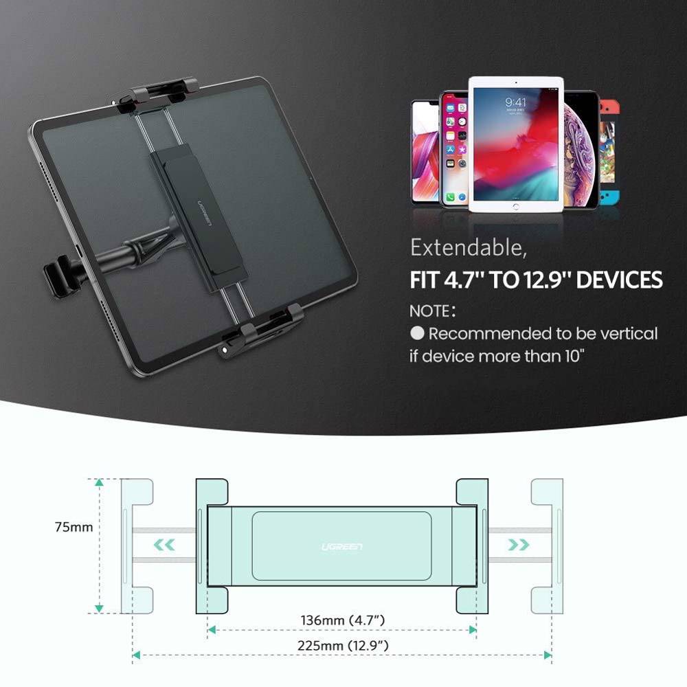პლანშეტის დამჭერი UGREEN LP160 (60108) Car Headrest Mount Holder, Black