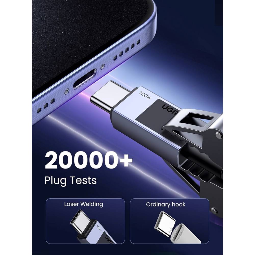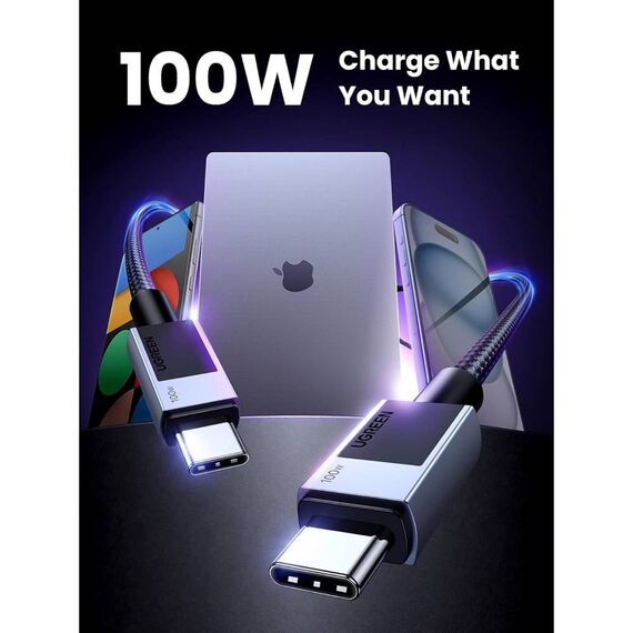 USB კაბელი UGREEN L512 (45063), 100W, Type-C to Type-C PD Fast Charging Cable, 1m, Space Gray
