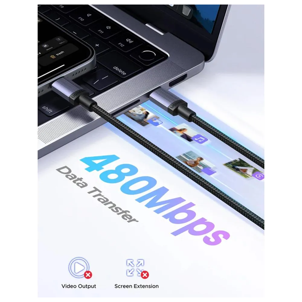 USB კაბელი UGREEN L528 (65832), 100W, Type-C to Type-C Cable, 1m, Grey/Black