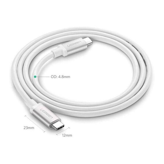 USB კაბელი UGREEN US264 (60520), 60W, Type C 2.0 Male To Male Cable, 2m, White