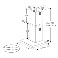 ძირითადი მახასიათებლები სიგანე:  60 სმ სიმაღლე:  102,5 სმ სიღრმე:  50,5 სმ ენერგეტიკული კლასი: A მინიმალური დონე:  43dBA მაქსიმალური ხმაურის დონე:  60dBA მინიმალური სიმძლავრე:  204 მ³/სთ სიმძლავრის დონეების რაოდენობა:...