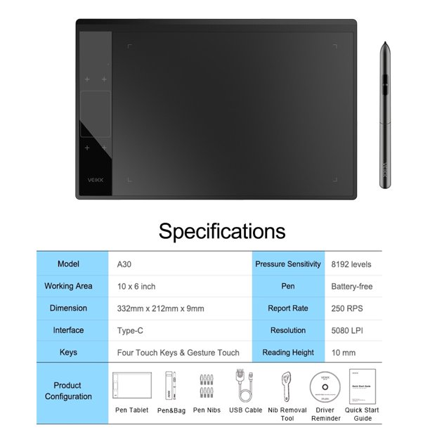 სახატავი პლანშეტი Veikk - Creator A30 Pen tablet