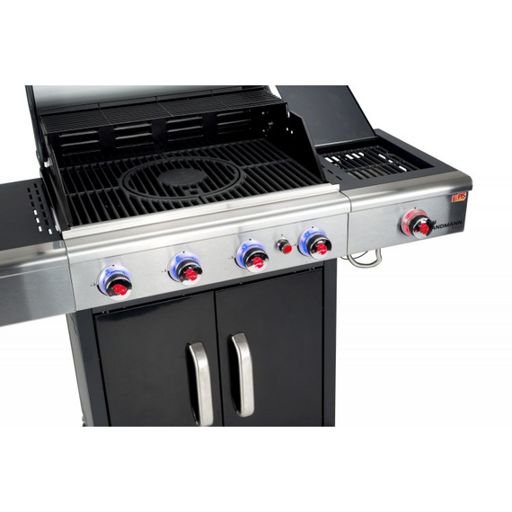 Landmann Triton Max PTS 4.1 აღჭურვილია მოდულური თუჯის ცხაურით, ის გთავაზობთ ნამდვილ მრავალფეროვნებას გრილზე მომზადებისას: შუა ნაწილი შეგიძლიათ მოხსნათ და შეიცვალოს პიცის ქვით ან გრილის ლანგარით. თითოეული სანთურა ცალკე რეგულირდება. ორი გვერდითი თარო მეტი კომფორტისთვის, ერთ-ერთში ჩაშენებულია გვერდითი სანთურა, რომელზედაც შეგიძლიათ მოამზადოთ გარნირები და სოუსები.